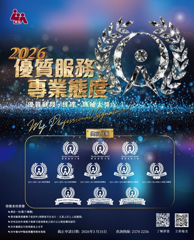 2026獎項費用︰每個獎項港幣550 (使用電子優惠劵後優惠價: 港幣450元) (請選擇所申請之獎項)